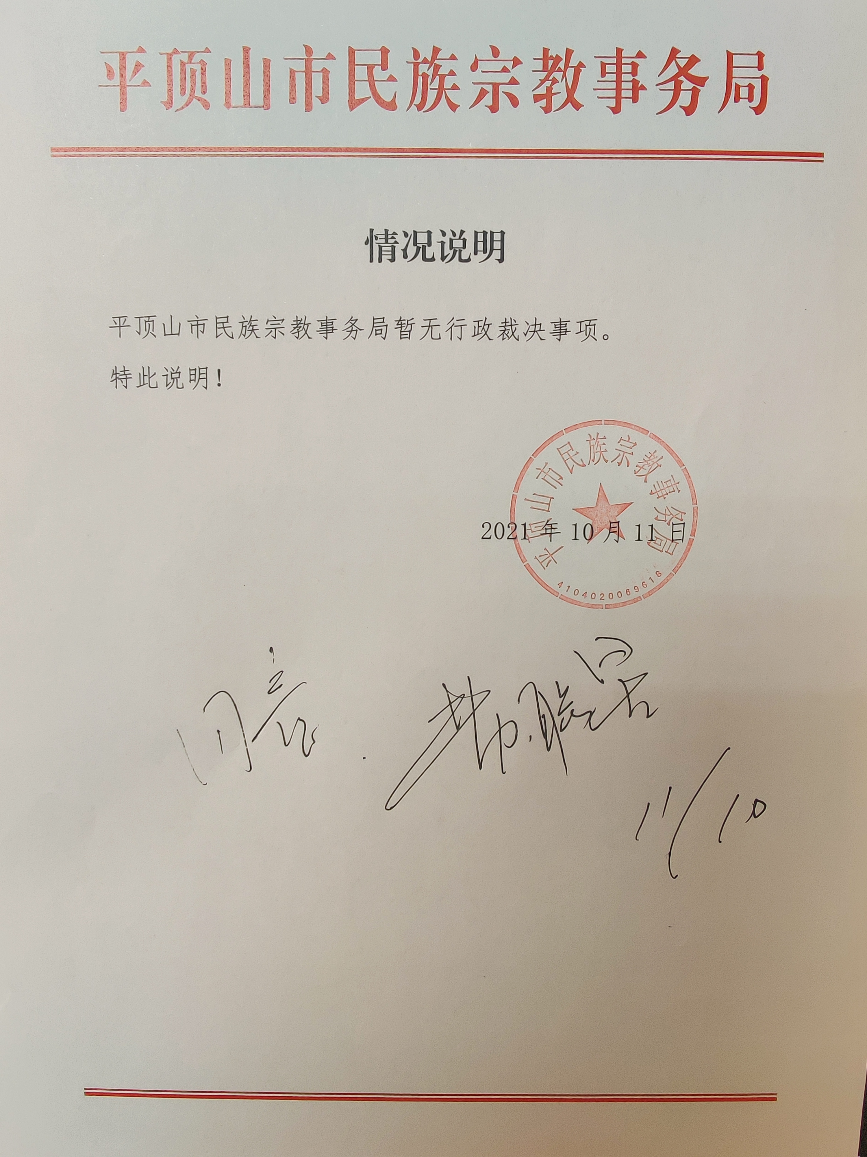 平顶山市民族宗教事务局行政裁决事项公示