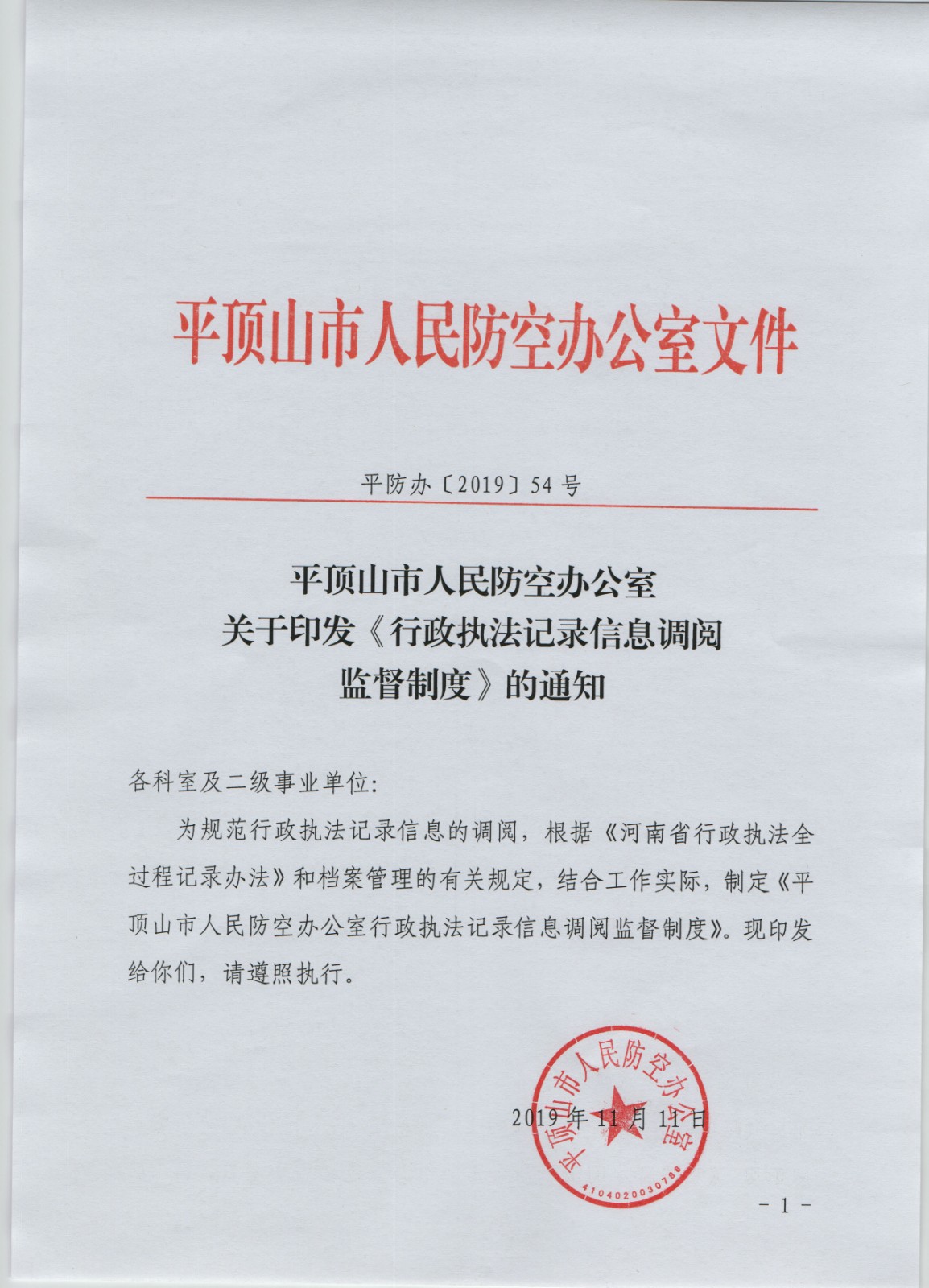 平顶山市人民防空办公室行政执法记录信息调阅监督制度